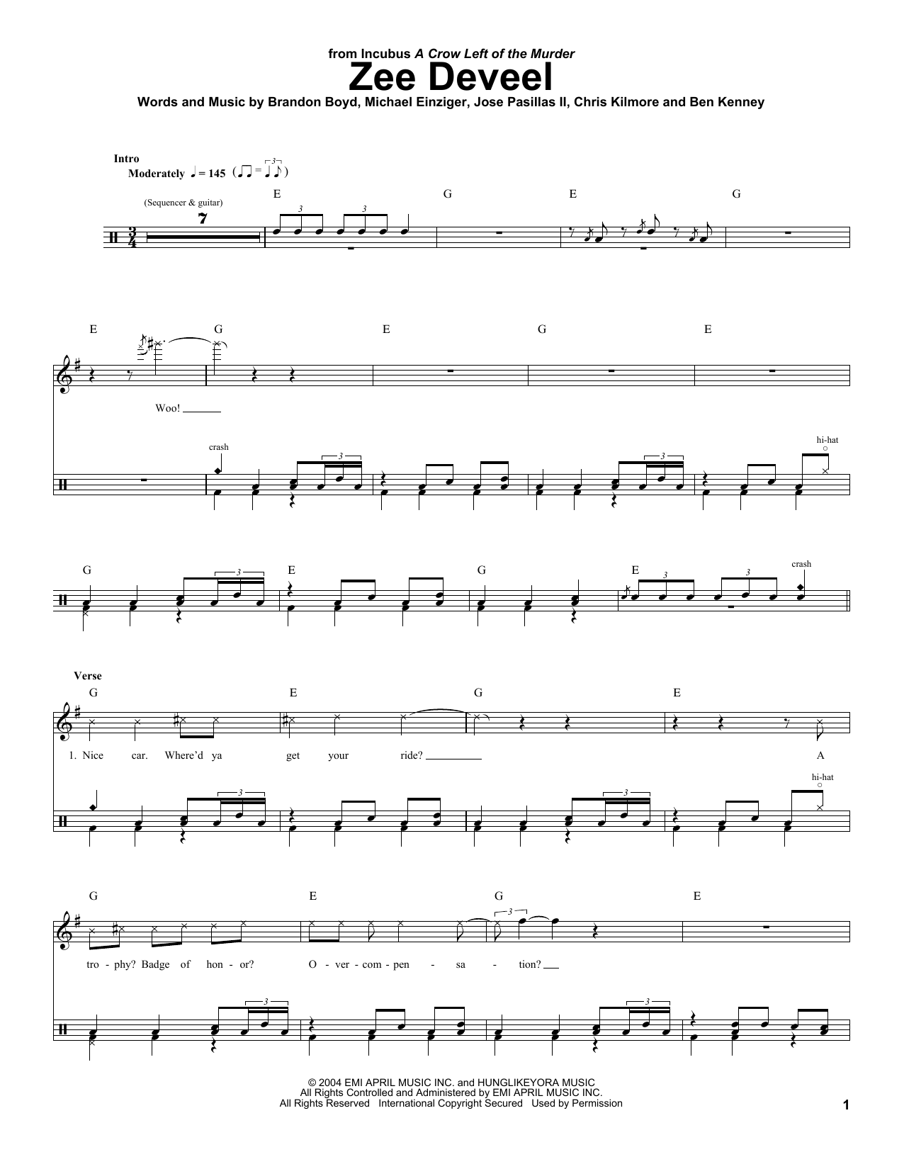 - Komponist Jose Pasillas II, Ben Kenney Brandon Boyd Chris Kilmore