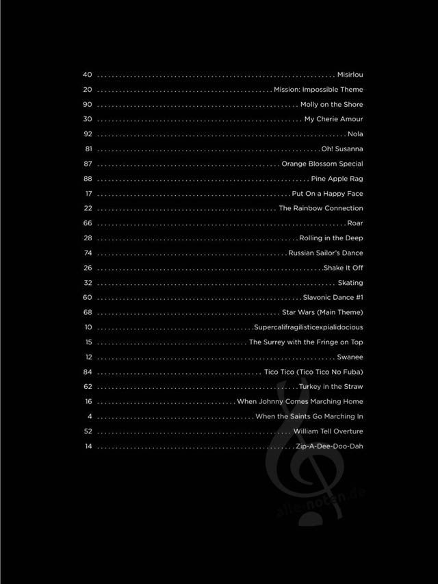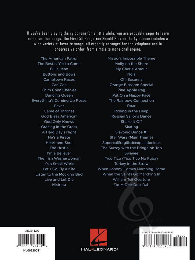 A must-have collection of well-known songs, from pop hits and movie themes to jazz tunes and classical melodies, all expertly arranged for early-level xylophone players and presented in progressive order, from simple to more challenging.