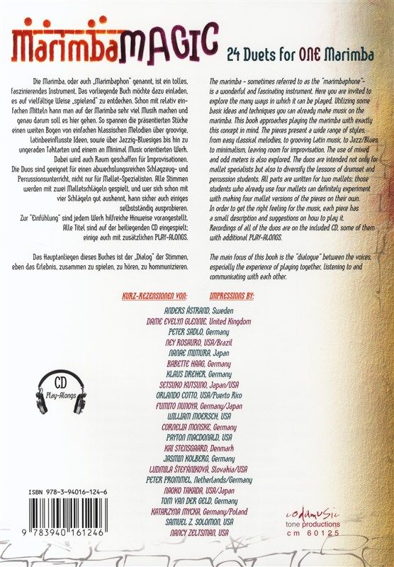 Marimba Magic features 24 Duets For One Marimba by Denis Stilke.