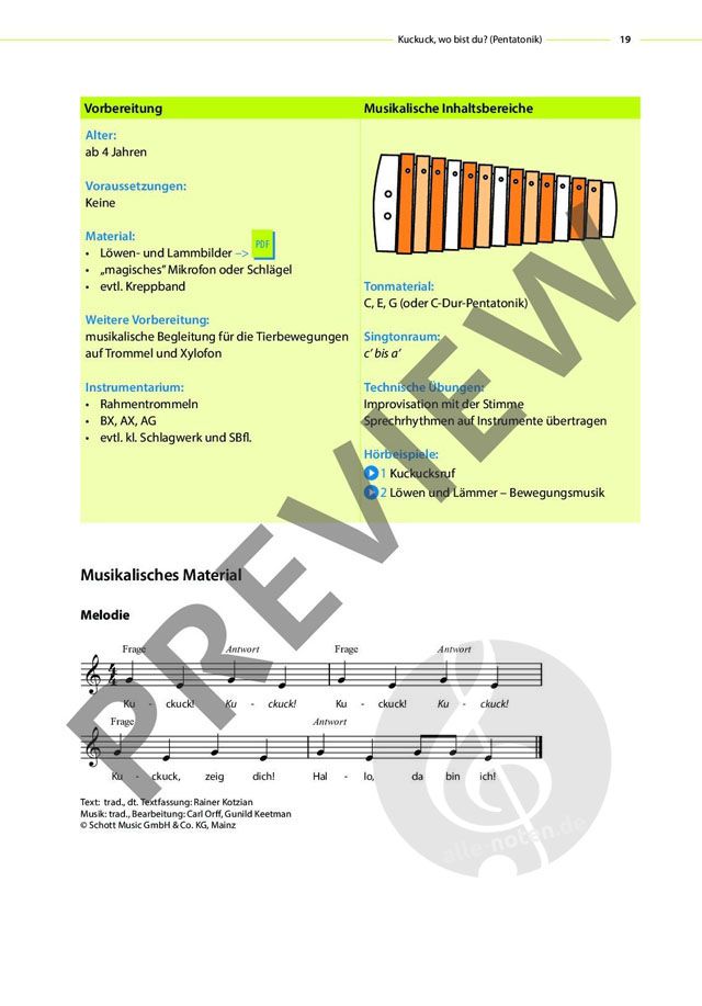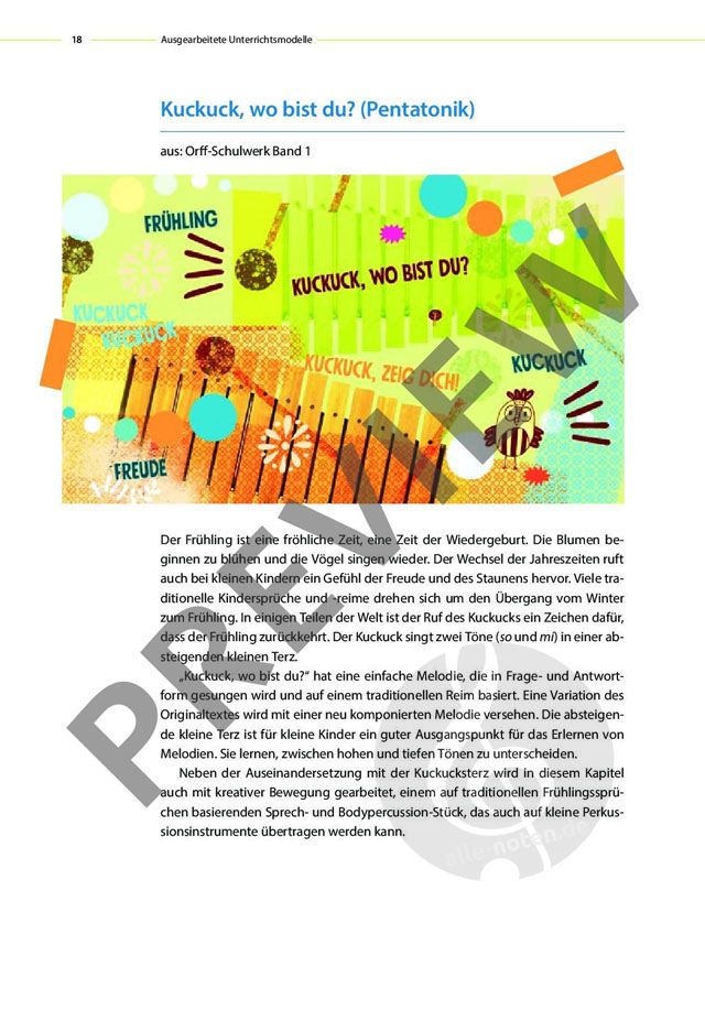 Kreative Unterrichtsmodelle zu 12 Spielstücken führen Kinder zwischen vier und zehn Jahren auf fantasievolle Weise durch unterschiedliche Tonarten: von pentatonisch bis phrygisch. Übersichtliche Notenbilder, Hörbeispiele und PDFs sowie Tipps für das Musizieren auf Orff-Instrumenten erleichtern die Unterrichtsvorbereitung und Umsetzung.
