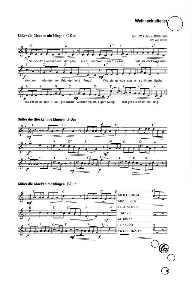 Durch Akkordsymbole lassen sich die Lieder mit Klavier, Keyboard oder Gitarre begleiten.