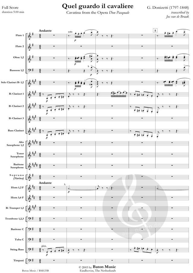 The Cavatina 'Quel guarda il cavaliere' is sung in the first act of Donizetti's opera Don Pasquale by the young Norina .She comments on a novel she is reading, but also dwells on her skills as a charm...