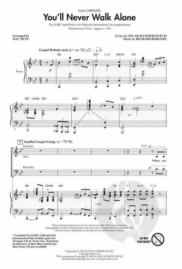 Aus Rodgers & Hammersteins Carousel in einem Gospel-Arrangement, das von Anfang bis Ende ein Kraftpaket ist. Ein fantastischer Beitrag zum Abschluss- oder Frühlingskonzert! Erhältlich für SATB, SAB, S...
