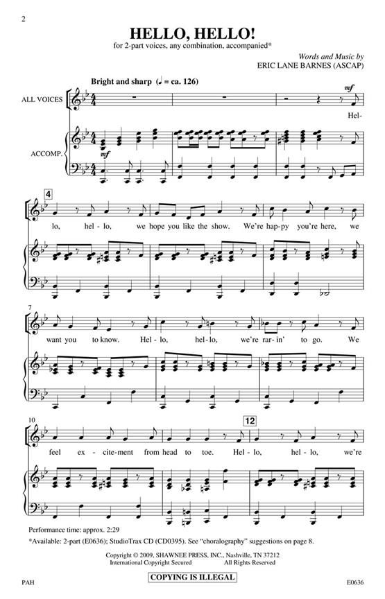 You'll find an incredible romp of singing and choreography in this 2-part choral for young singers. It begins with a wonderful 'hello' theme that welcomes the audience to your show. The next section c...