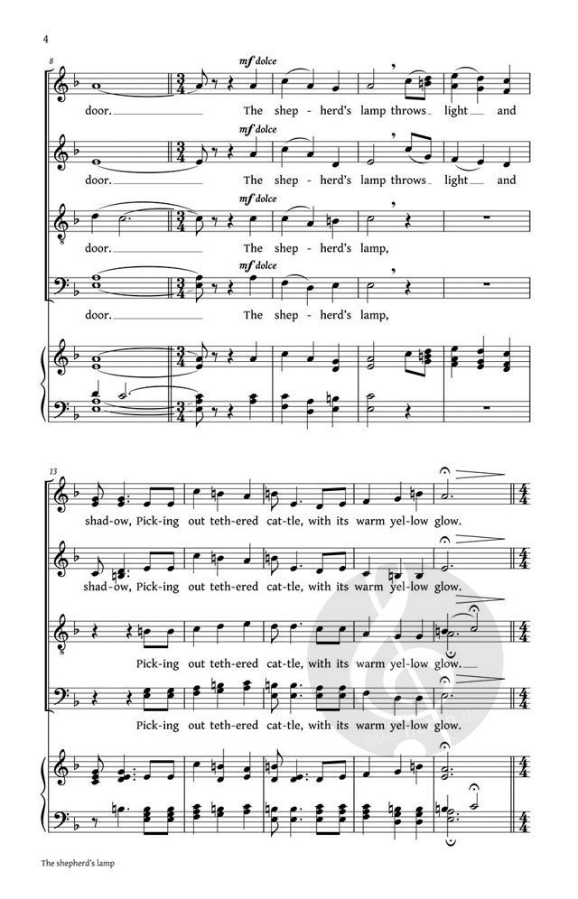 This simple strophic carol connects the light from the shepherd's lamp at the stable door to the light that Jesus shines on the pathway of the believer. On the final verse, it grows to a glorious high...