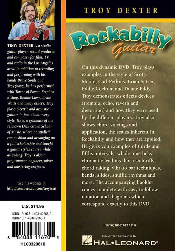 On this dynamic DVD, Troy Dexter plays examples in the style of such rockabilly greats as Scotty Moore, Carl Perkins, Brian Setzer, Eddie Cochran and Duane Eddy. He demonstrates effects devices (tremo...