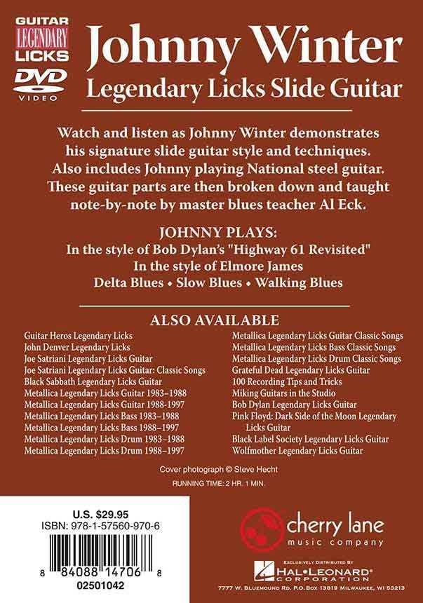 Watch and listen as Johnny Winter demonstrates his signature slide guitar style and techniques. Also includes Johnny playing National steel guitar. These guitar parts are then broken down and taught n...