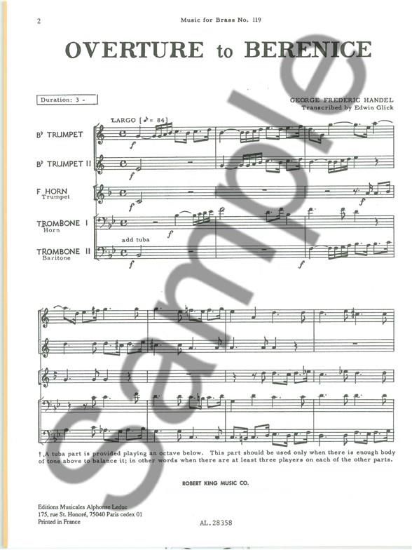 For 2 trumpets (or cornets), horn 1 (or trumpet), horn 2 (or trombone), trombone and trombone (or tuba).