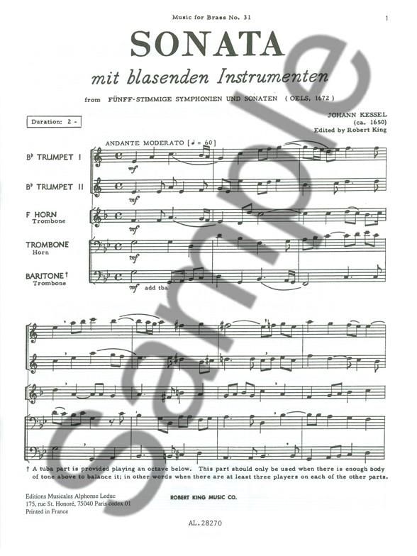 For 2 trumpets, horn (or trombone), trombone and trombone (or tuba).