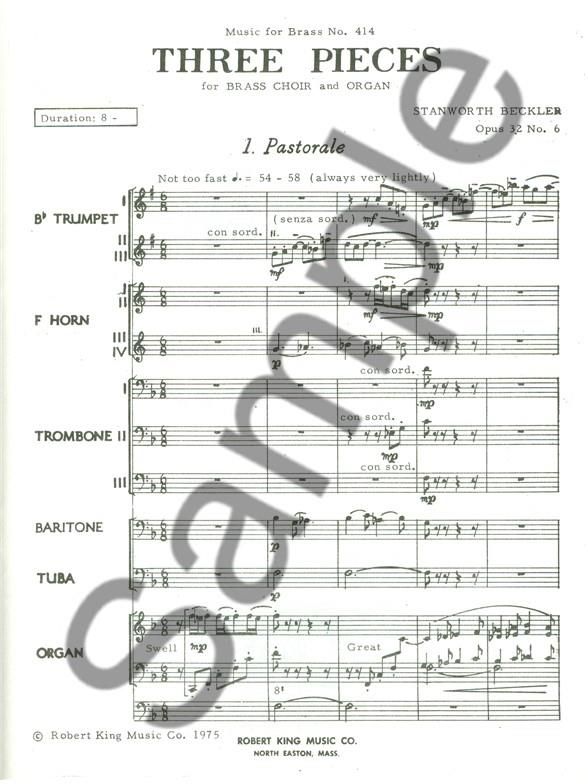 For 2 trumpets, trombone (or horn or trumpet), trombone and organ.