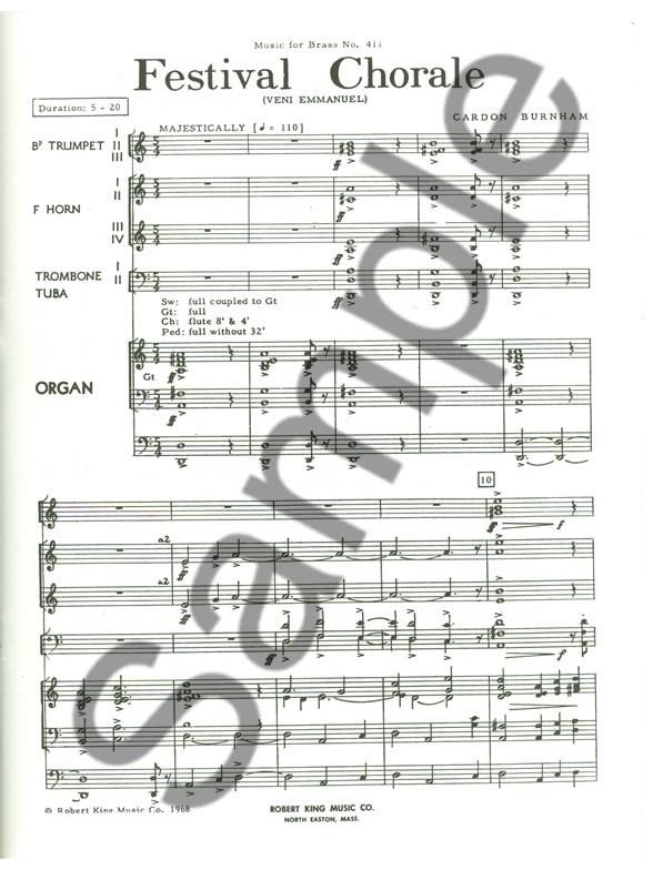 For 2 trumpets, trombone (or horn), trombone (or euphonium) and organ.