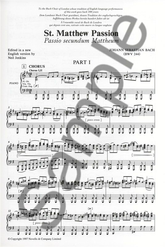 Most of the English-speaking choral singers who make up their country's thriving choirs and choral societies will have sung Bach's great Passions in English at some time or other. This edition is in b...
