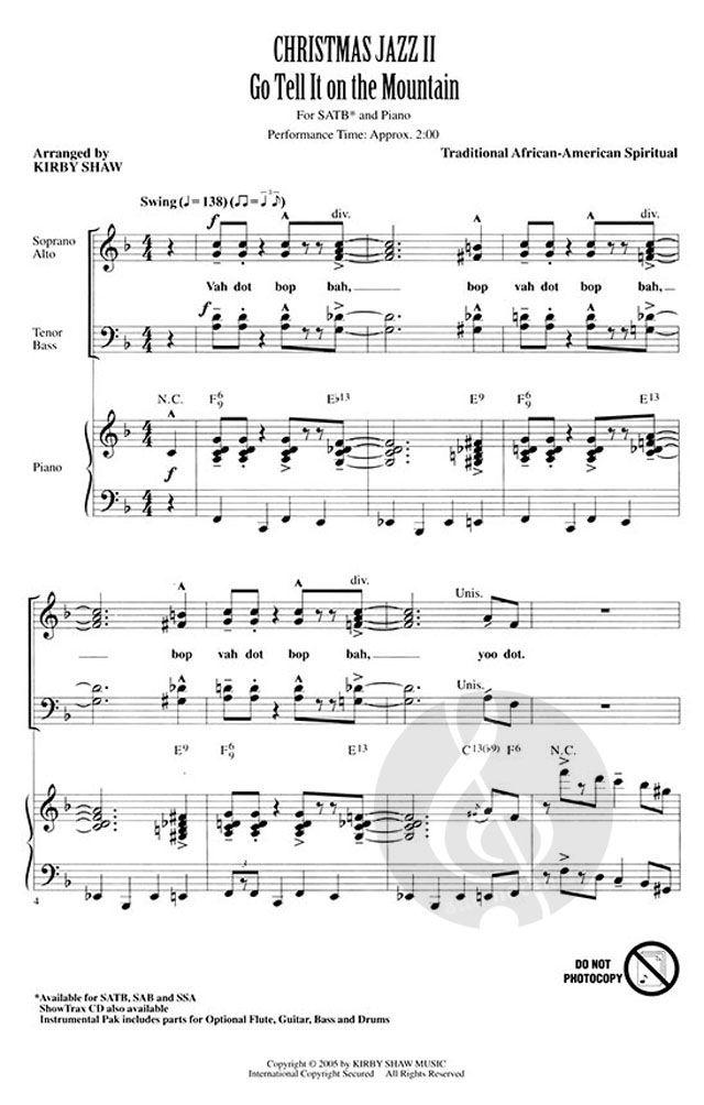 Diese jazzigen Melodien eignen sich hervorragend für Konzerte und Weihnachtsfeiern und werden ein großer Hit für Ihr Publikum sein! Enthält: Go, Tell It on the Mountain, The Holly and the Ivy, Silent...