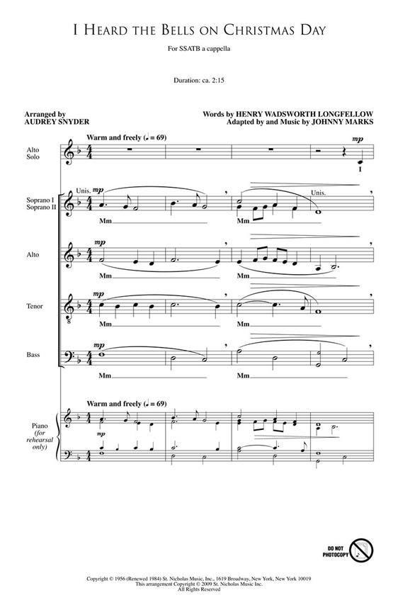 Henry Wadsworth Longfellow's inspiring poetry still rings true today with this contemporary classic heard each Christmas in recordings by Bing Crosby, Sarah McLachlan and more. This setting features a...