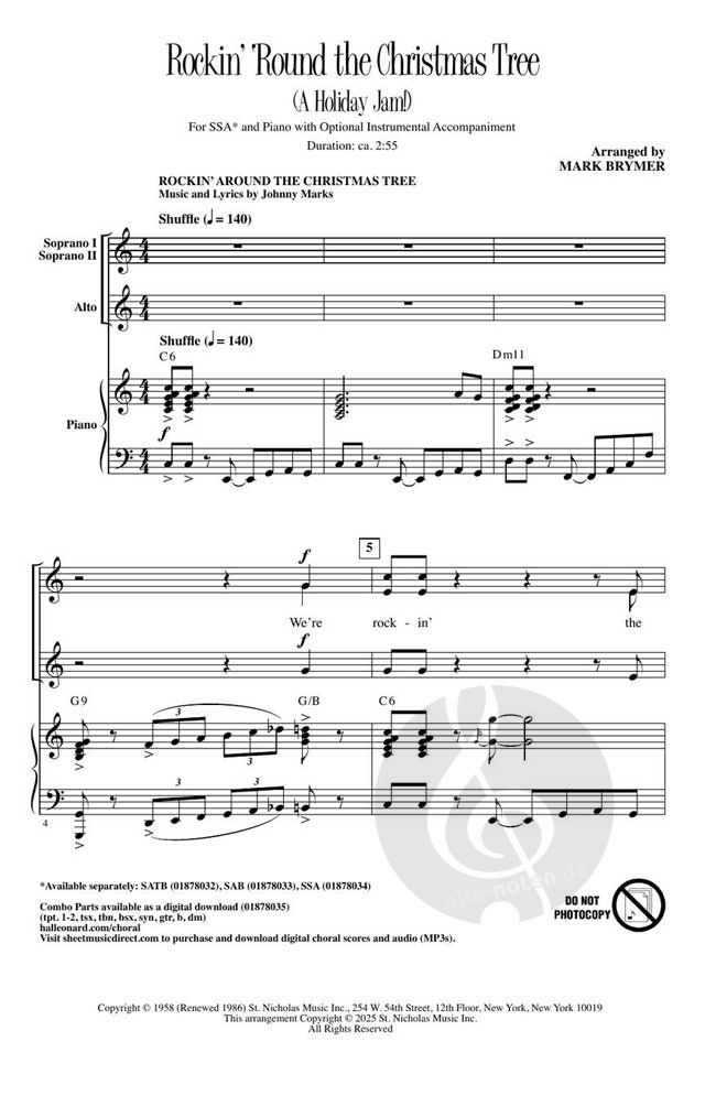 - Frosty The Snow Man von Stve Nelson & Jack Rollins: Frosty und seine Freunde kommen mit lautem Getöse direkt in die Stadt – allerdings mit einem kleinen Rock'n'Roll-Update. Verrückt und lustig arrangiert von Kirby Shaw.
