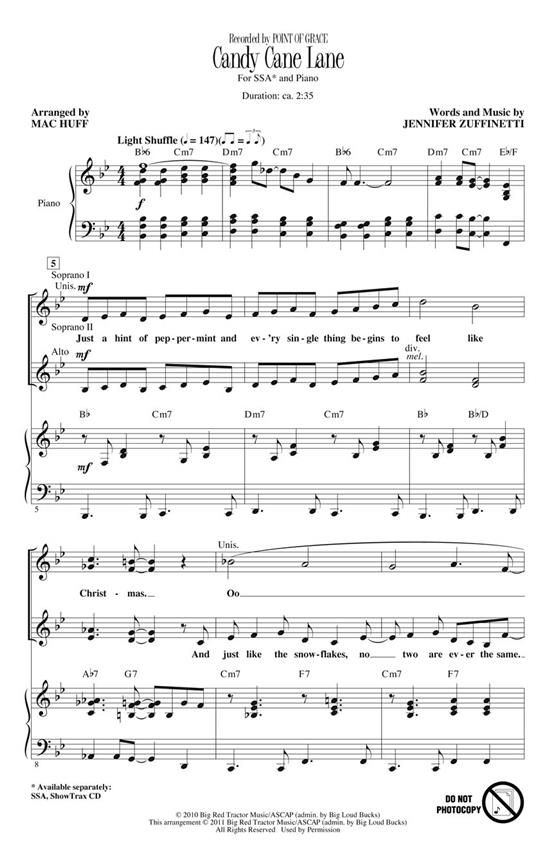 - Santa Claus Is Comin' to Town von Haven Gillespie & J. Fred Coots: Diese unterhaltsame Vertonung eines Feiertagsklassikers zaubert mit Sicherheit ein Lächeln auf das Gesicht des Kindes in uns allen! Mit einer selten gesungenen Strophe sowie Percussion und Kontrabass versehen wird dieses skurrile Arrangement von John Leavitt mit Sicherheit ein Publikumsliebling sein.