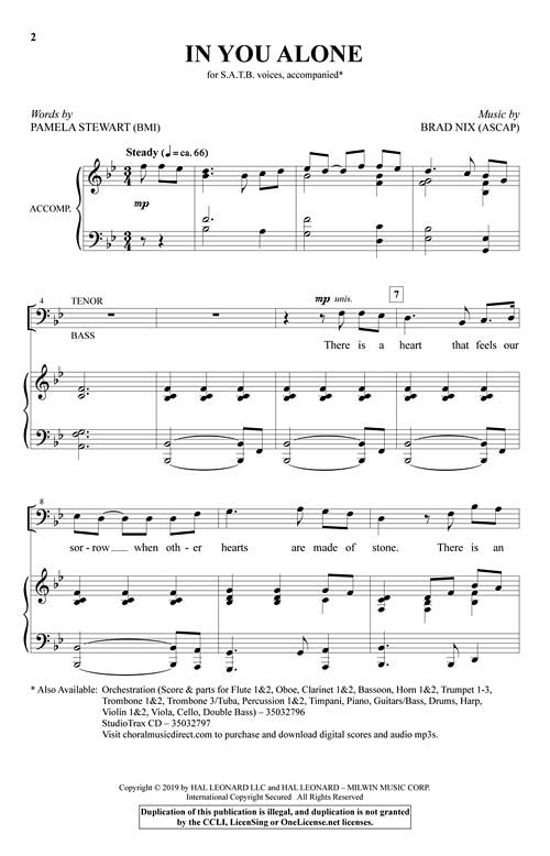 A tender song of testimony, this song takes the listener into the heart of divine mercy and love. The poetry is filled with hopeful, truthful images of God's presence along the journey of life. The mu...
