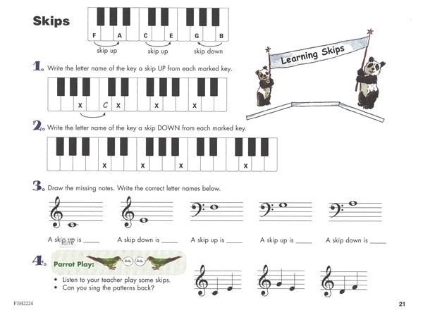 Helen Marlais' Succeeding At The Piano: Lesson And Technique Book - Grade 1A ist gefüllt mit fesselnden Aktivitäten wie Zuordnen, Benennen von Noten und Intervallen, Komponieren, Gehörbildung, Erkenne...