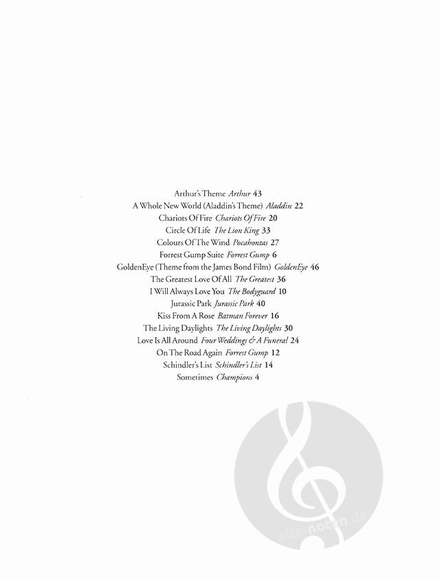 Sixteen big-screen film themes expertly arranged by Kenneth Baker. Includes 'Circle Of Life', 'Golden Eye', 'Love Is All Around' and 'A Whole New World'.
