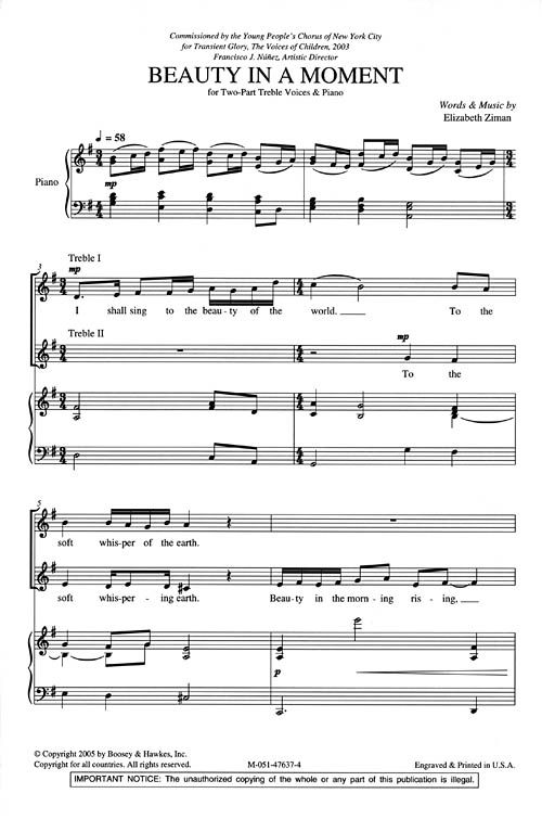 A part of the Transient Glory series of compositions commissioned by the Young People's Chorus of New York City, this work celebrates the joys of urban life. Composed by Tony Award winners Lynn Ahrens...