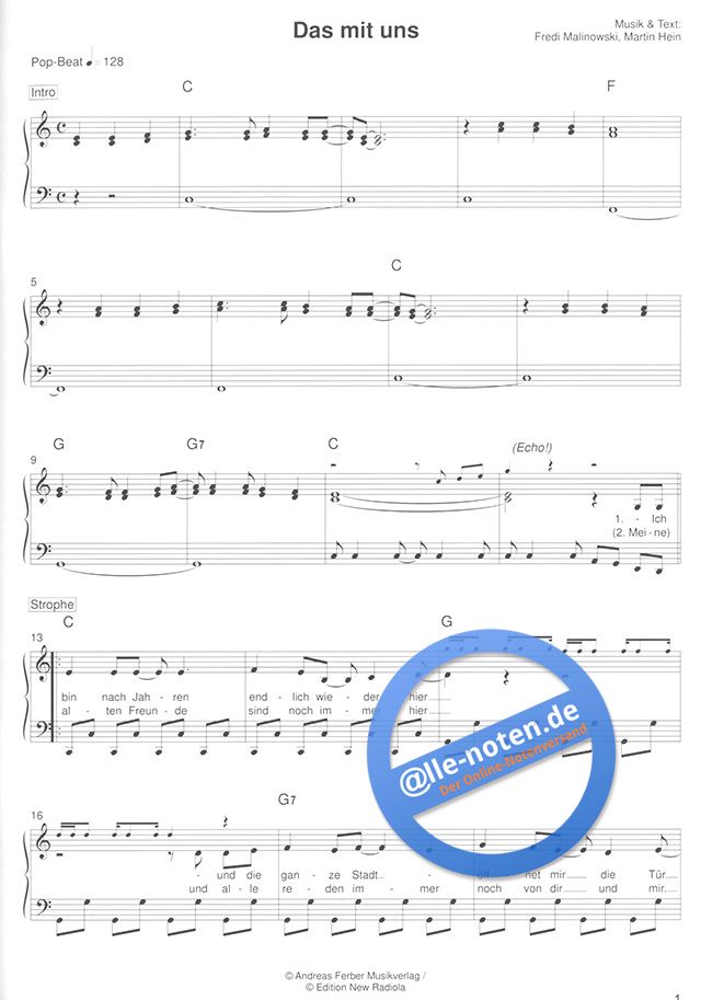 Pop-Noten für Klavier (rechte Hand Melodie), Gesang & Gitarre