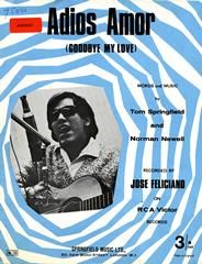 Adios Amor (Goodbye My Love), as performed by José Feliciano, arranged for voice and piano with guitar chords.