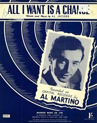 All I Want Is A Chance, as performed by Al Martino, arranged for voice and piano with guitar chords.