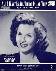 All I Want Is All There Is And Then Some, as performed by Margaret Whiting, arranged for voice and piano with guitar chords.