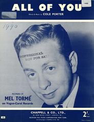 All Of You, written by Cole Porter, from 'Silk Stockings', as performed by Mel Tormé, arranged for voice and piano with guitar chords.