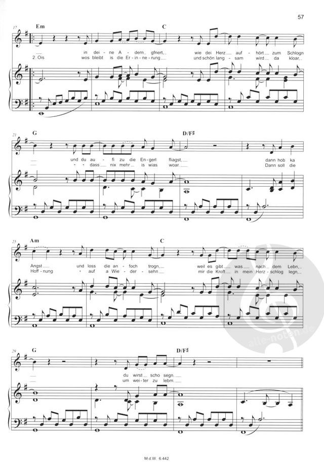- Noten (Melodie, Text und Akkorde)