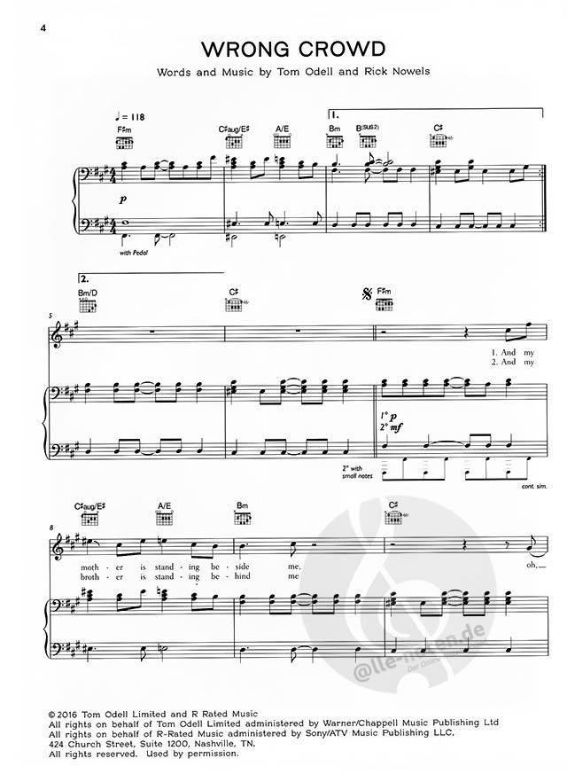Noten des Chart-Hits von Tom Odell für Klavier, Gesang und Gitarre.