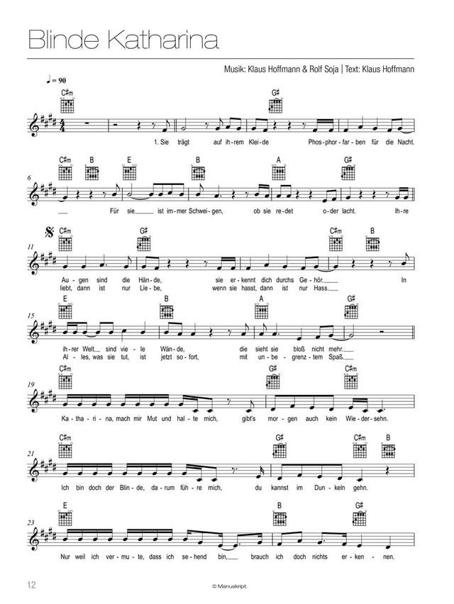 Dieses Songbook beinhaltet eine Werkschau des Liedermachers, Schauspielers und Autors Klaus Hoffmann. Der Grandseigneur des deutschen Chansons blickt auf ein bewegtes Leben zurück, das er seit Mitte der 60er Jahre eindrücklich in seinen Liedern reflektiert und verarbeitet.