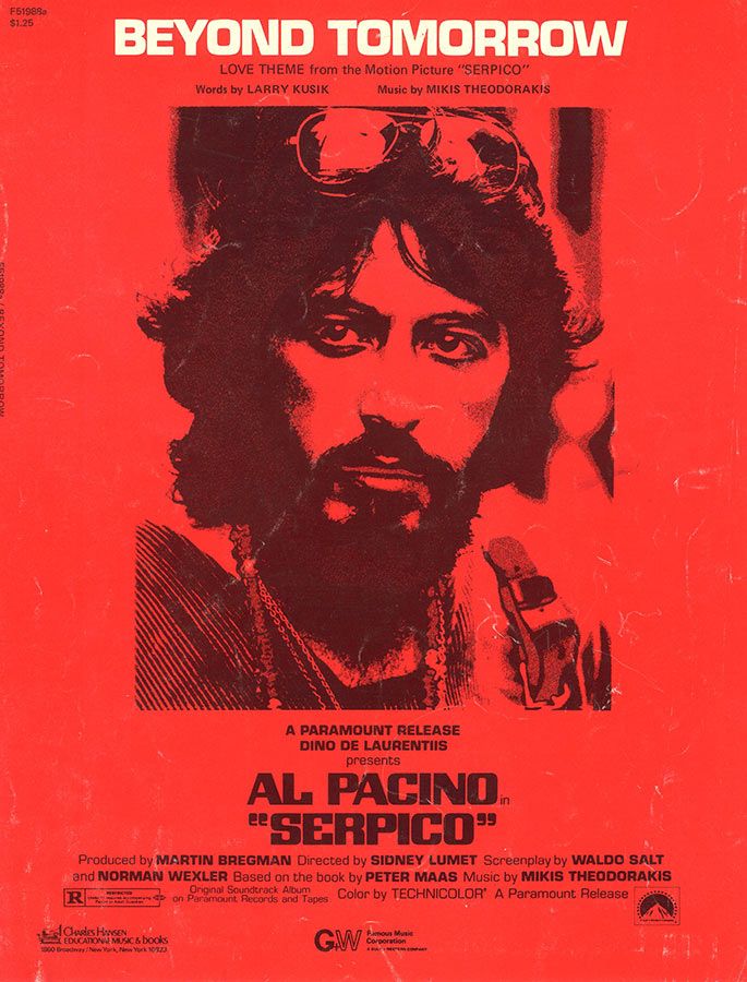 Beyond Tomorrow, love theme from the motion picture 'Serpico', written by Mikis Theodorakis with words by Larry Kusik and arranged for voice and piano with guitar chords.