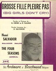 Grosse Fille Pleure Pas (Big Girls Don't Cry), as performed by The Four Seasons, arranged with French words for voice and piano with guitar chords.