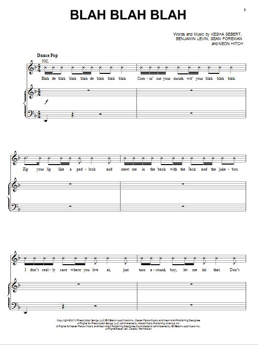 - Komponist Benjamin Levin, Sean Foreman, Neon Hitch, Kesha Sebert