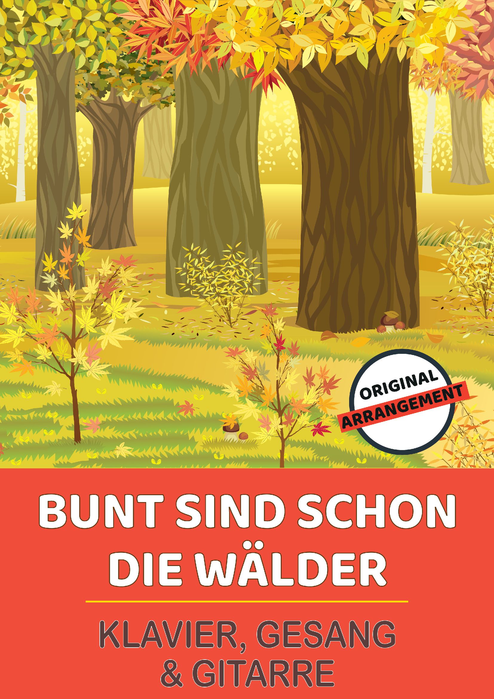 Dieses Notenheft enthält die Originalnoten zum Kinderlied "Bunt sind schon die Wälder" für Klavier, Gesang und Gitarre. Mittlerer Schwierigkeitsgrad in F-Dur mit Liedtext.