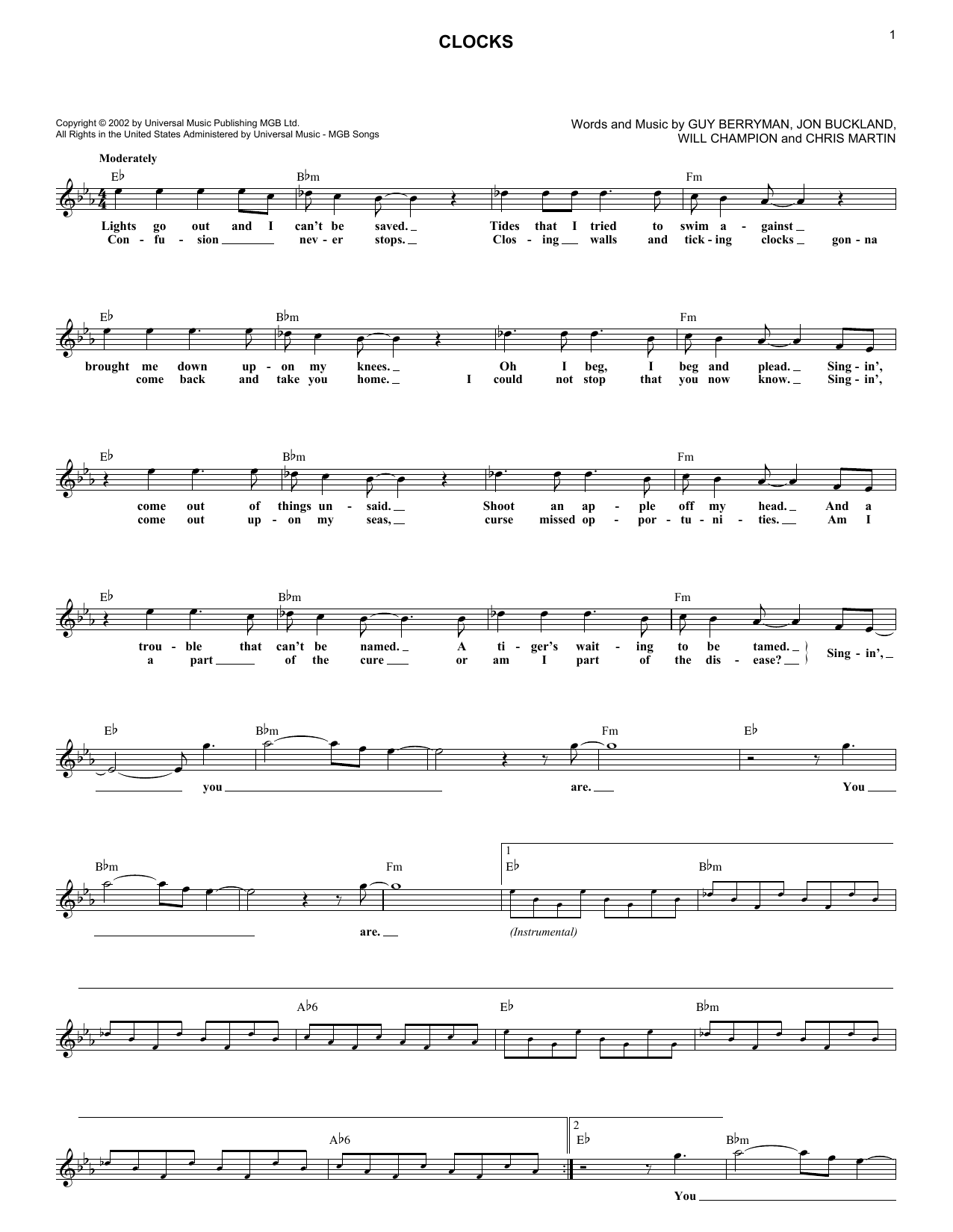 - Komponist Chris Martin Guy Berryman Jonathan Buckland William Champion