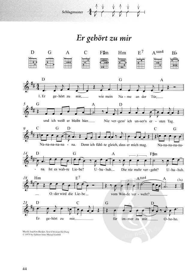 - Noten (Melodie, Text und Akkorde)