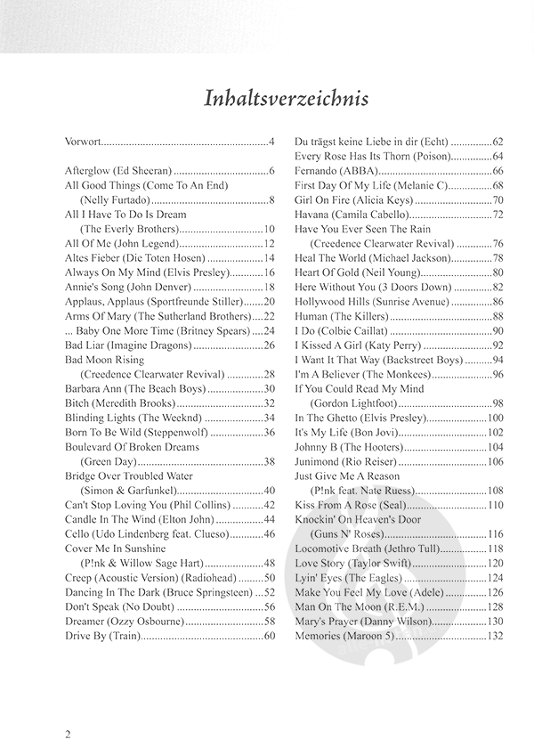 Auch das sechste Songbook in der Reihe Liederbücher für Alt und Jung (und der zweite Band vom Rock & Pop Fetenbuch) gibt es nun mit Spiralbindung und im XXL-Notenformat mit größeren Texten und Noten. Es enthält weitere 100 beliebte und bekannte Songs aus den letzten 60 Jahren Popgeschichte. Mit beliebten Oldies aus den 60er Jahren von Elvis Presley, den Beatles oder Simon & Garfunkel bis hin zu aktuellen Hits von Ed Sheeran, The Weeknd, Adele oder Taylor Swift enthält der Band Lieder, die jeder im Ohr hat und die zu singen viel Spaß macht. Allen Songs vorangestellt sind die benötigten Akkordgriffe sowie Schlag- und Zupfmuster für die Begleitung. Eine Playlist mit allen Songs gibt es bei Spotify (100 Rock & Pop Fetenhits 2 für Alt und Jung). Für Gitarristen ist die XXL-Version des Liederbuchs besonders praktisch, denn mit der Spiralbindung steht das Buch perfekt auf dem Notenständer. Die Stücke sind fast immer auf maximal zwei Seiten notiert - beim Spielen muss also nicht umgeblättert werden. Zudem sind die Noten und Texte groß genug abgebildet, um sie auch mit bis zu einem Meter Abstand noch gut lesen zu können. Dank der Zupfmuster, die bei allen Stücken angegeben sind, wird auch der Einstieg in die Welt des Folkpickings spielend leicht. Die XXL-Version eignet sich durch die Größe der Noten und Texte insbesondere auch für Personen mit einer Sehschwäche und für das gemeinsame Singen in der Gruppe. Das Rock & Pop Fetenbuch XXL ist der ideale Begleiter für gesellige Stunden mit Alt und Jung. Aus dem Inhalt: Afterglow (Ed Sheeran) - All Of Me (John Legend) - Annie's Song (John Denver) - Applaus, Applaus (Sportfreunde Stiller) - Blinding Lights (The Weeknd) - Bridge Over Troubled Water (Simon & Garfunkel) - Candle In The Wind (Elton John) - Cello (Udo Lindenberg feat. Clueso) - Cover Me In Sunshine (P!nk & Willow Sage Hart) - Havana (Camila Cabello) - Heart Of Gold (Neil Young) - Here Without You (3 Doors Down) - Junimond (Rio Reiser) - Make You Feel My Love (Adele) - No Matter What (Boyzone) - Ochrasy (Mando Diao) - Royals (Lorde) - Senorita (Shawn Mendes) - Shallow (Lady Gaga) - Someone Like You (Adele) - Sweet Caroline (Neil Diamond) - Viva La Vida (Coldplay) - Wellerman (Nathan Evans) - Wish You Were Here (Pink Floyd) - With Or Without You (U2) - You Raise Me Up (Josh Groban) - You'll Never Walk Alone (Gerry & The Pacemakers) u. v. m.