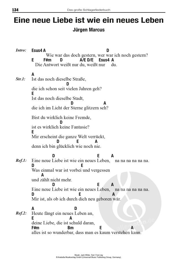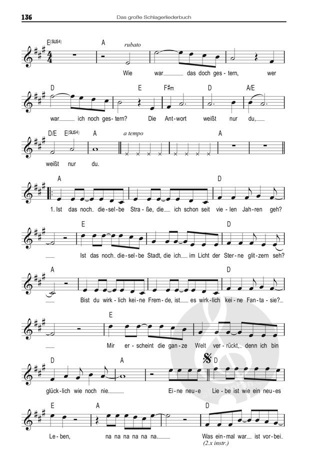 Das Buch beinhaltet eine gelungene Mischung aus den großen Schlagerhits der jüngsten Zeit wie Geboren um zu leben (Unheilig), Mein Herz (Beatrice Egli) oder So a schöner Tag (Tim Toupet) und Evergreens der vergangenen Jahrzehnte wie Wär' ich ein Buch zum Lesen (Daliah Lavi), Ganz oder gar nicht (Wolfgang Petry), Deine Spuren im Sand (Howard Carpendale), Das ganze Leben ist ein Quiz (Hape Kerkeling), Himbeereis zum Frühstück (Hoffmann und Hoffmann) oder Liebe ohne Leiden (Udo Jürgens).