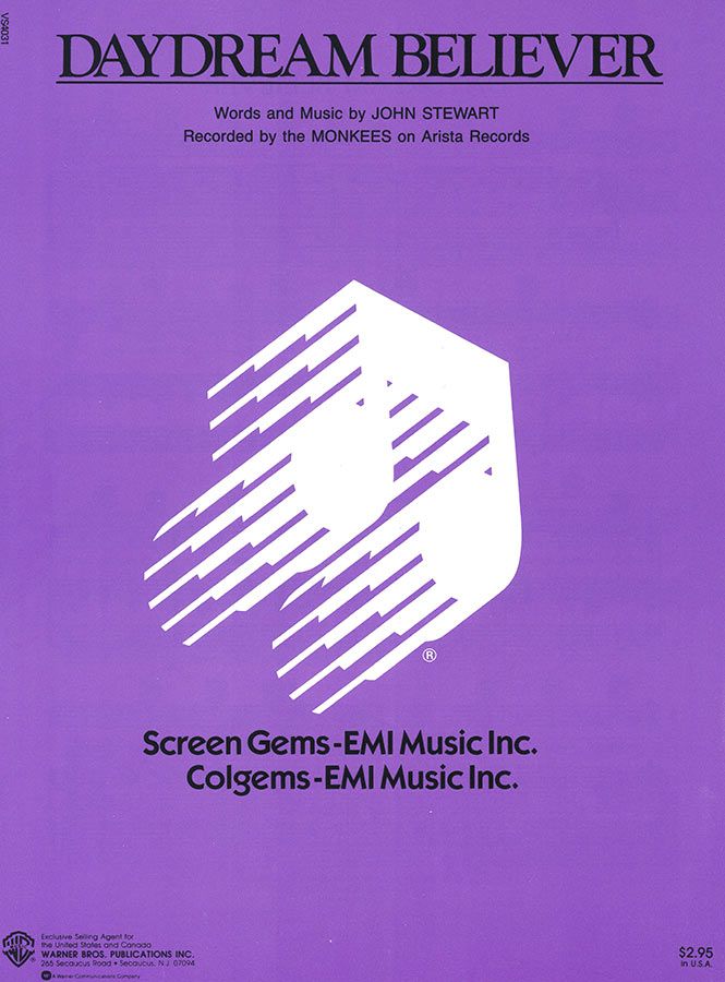 Daydream Believer, written by John Stewart, as performed by The Monkees, arranged for voice and piano with guitar chords.