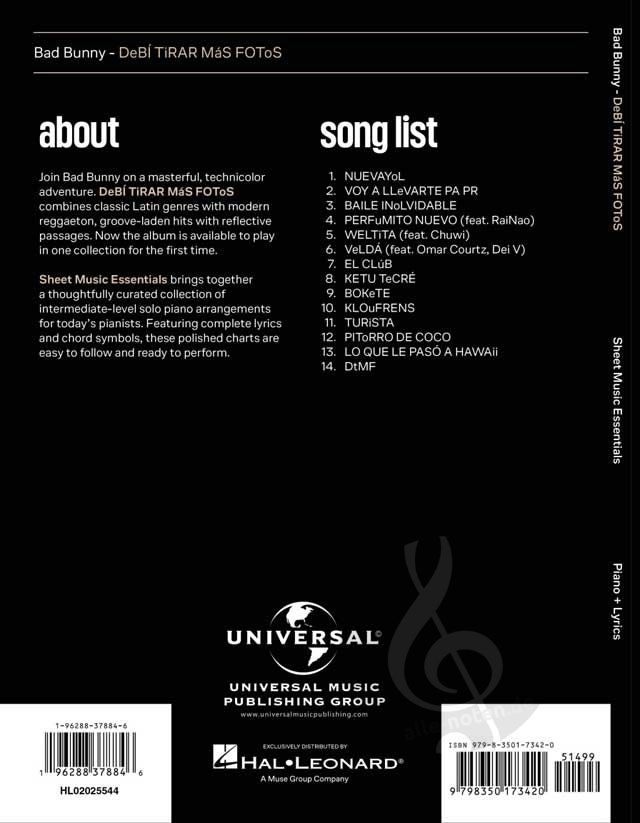 Die Lieder umfassen: Baile Inolvidable - DtMF - Nuevayol - Perfumito Nuevo - Voy a Llevarte Pa PR - und mehr.