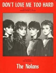 Don't Love Me Too Hard, as performed by The Nolans, arranged for voice and piano with guitar chords.