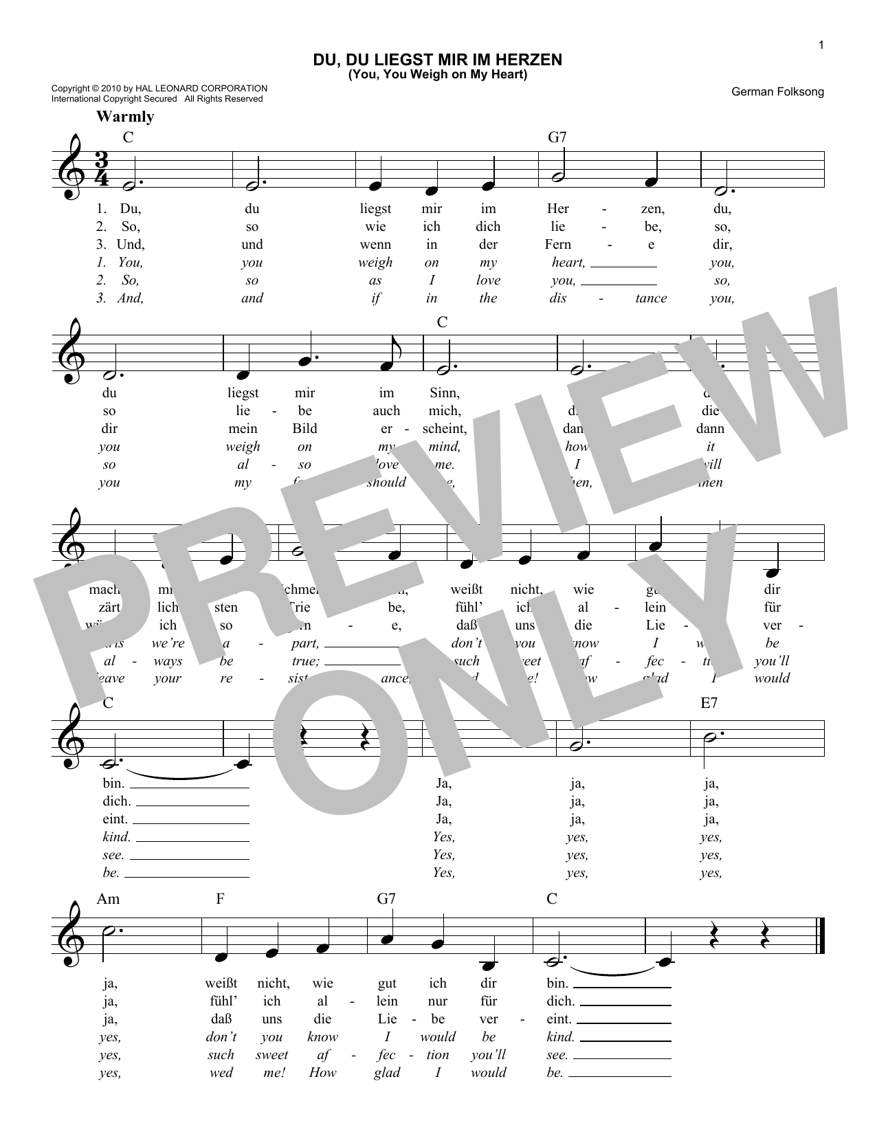 Du, Du Liegst Mir Im Herzen