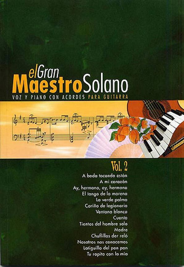 Ein besonderes zweibändiges Set mit Liedern des großen Juan Solano Pedrero, arrangiert für Klavier, Gesang und Gitarre. Als Mitglied des äußerst erfolgreichen Trios Ochaita, Valerio und Solano entwickelte der Maestro Solano seine Fähigkeiten als Komponist, und die Gruppe wurde verantwortlich für einige der berühmtesten Lieder Spaniens. Seine Werke wurden von vielen Stars gesungen, darunter Concha Piquer, Manolo Escobar und Rafael Farina. Zu seinen beliebtesten und bekanntesten Liedern gehören A Tu Vera, El Porompompero und Almoneda.