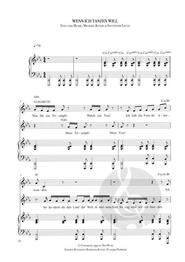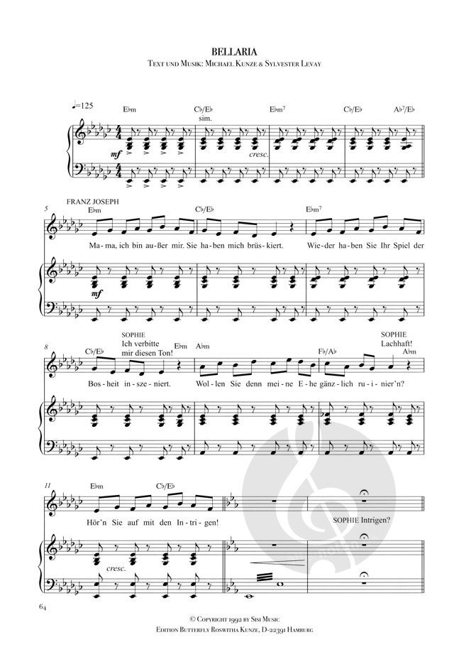 Songbook (Noten für Klavier, Gesang und Gitarre) zum Musical 'Elisabeth' von Michael Kunze (Libretto) und Sylvester Levay (Musik).