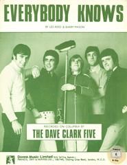 Everybody Knows composed by Les Reed and Barry Mason, as recorded by The Dave Clark Five in the key of F Major arranged for voice and piano with guitar chords.