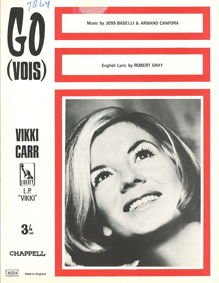 Go, as performed by Vikki Carr, arranged for voice and piano with guitar chords.