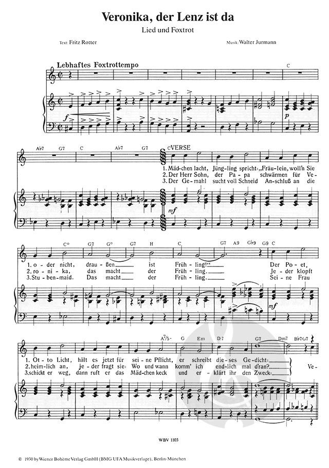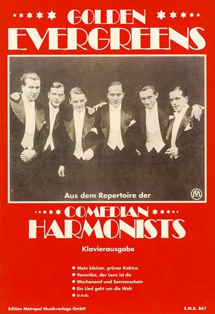 Songbook (Noten für Klavier, Gesang und Gitarre) mit den Erfolgshits der Comedian Harmonists: Mein kleiner grüner Kaktus, Veronika der Lenz ist da, Das ist die Liebe der Matrosen, Ein Freund, ein guter Freund, Wochenend und Sonnenschein u.v.m.