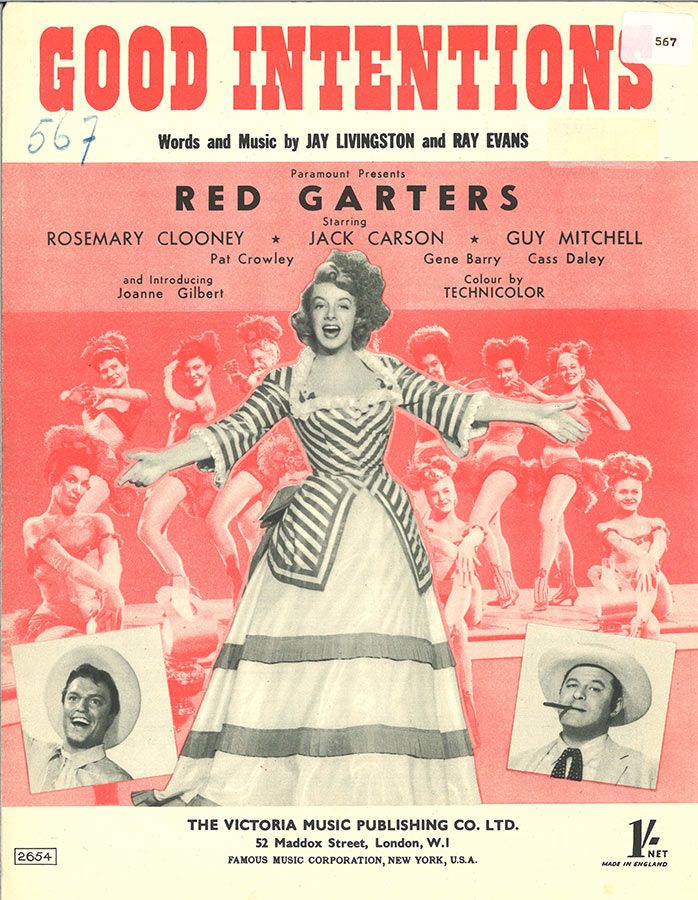 Good Intentions, written by Jay Livingston and Ray Evans, as performed by Rosemary Clooney in the Paramount Picture 'Red Garters', arranged for voice and piano with guitar chords.